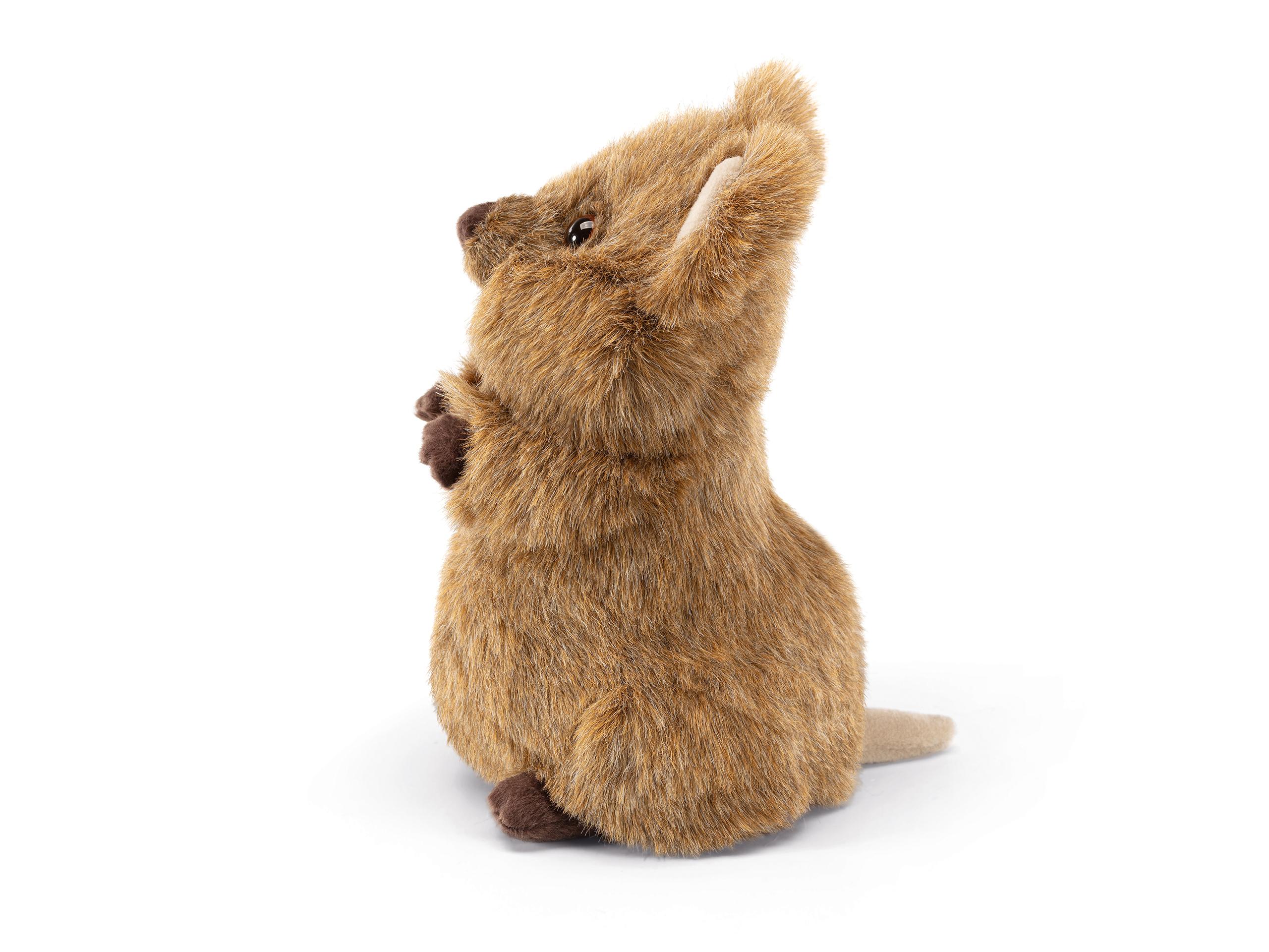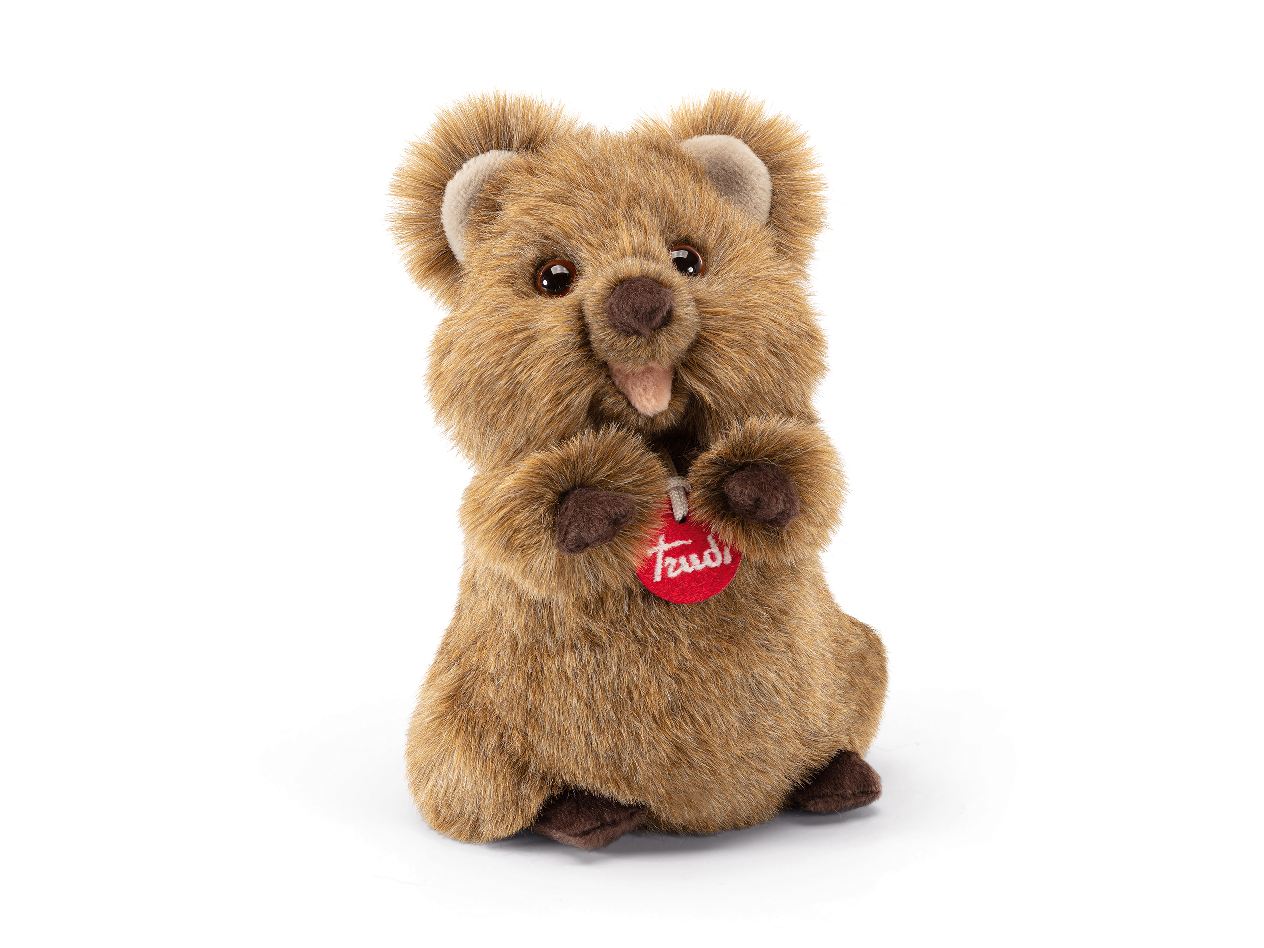Das Quokka Arturo von Trudi, das heute in seiner weicheren, zotteligen Form bekannt ist, ist ein australisches Beuteltier, das einem kleinen, lustigen Känguru ähnelt. Es ist menschenfreundlich und dank seines Lächelns gilt es als glücklichstes Tier der Welt und in der Trudi-Version ist es noch glücklicher.