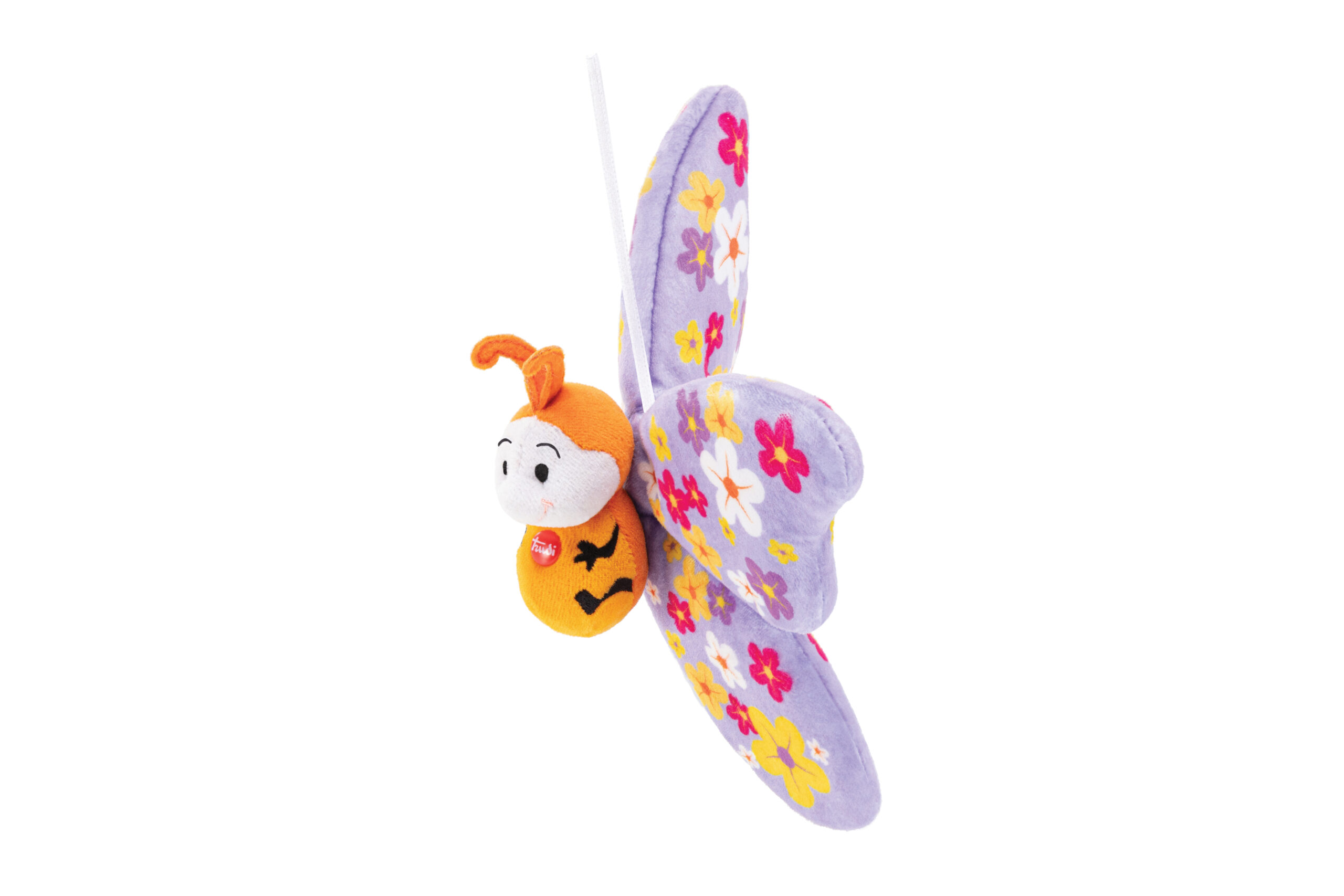 Flowers, colours and lightness are the characteristics of Trudi’s colourful butterflies. Made of soft materials embellished with rich prints and embroideries. Thanks to a satin loop, they can also be hung and they are suitable for various uses: to decorate backpacks, to give a touch of colour to bedrooms or they can even be used as an Easter tree ornament. A cute touch of Trudi spring that you can carry with you at all times! The soft toy is machine washable at 30° when the size allows it; alternatively, it can be hand-washed using a sponge and neutral soap.